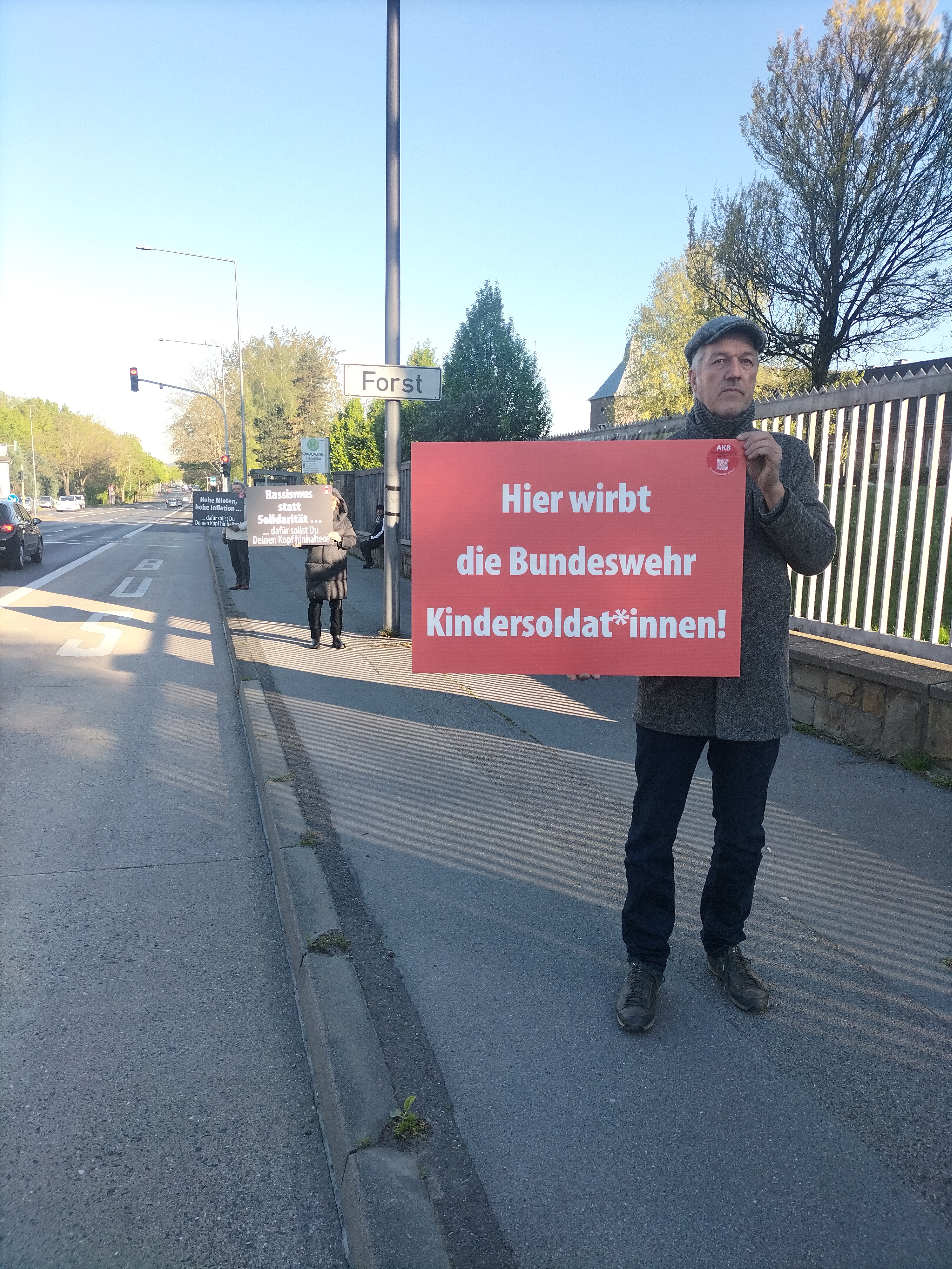 Unser Beitrag für die „Parade gegen Krieg und Militarisierung“ war eine satirische Soldatensegnung in Anspielung auf die jährliche Soldatensegnung im Kölner Dom durch Kardinal Woelki.