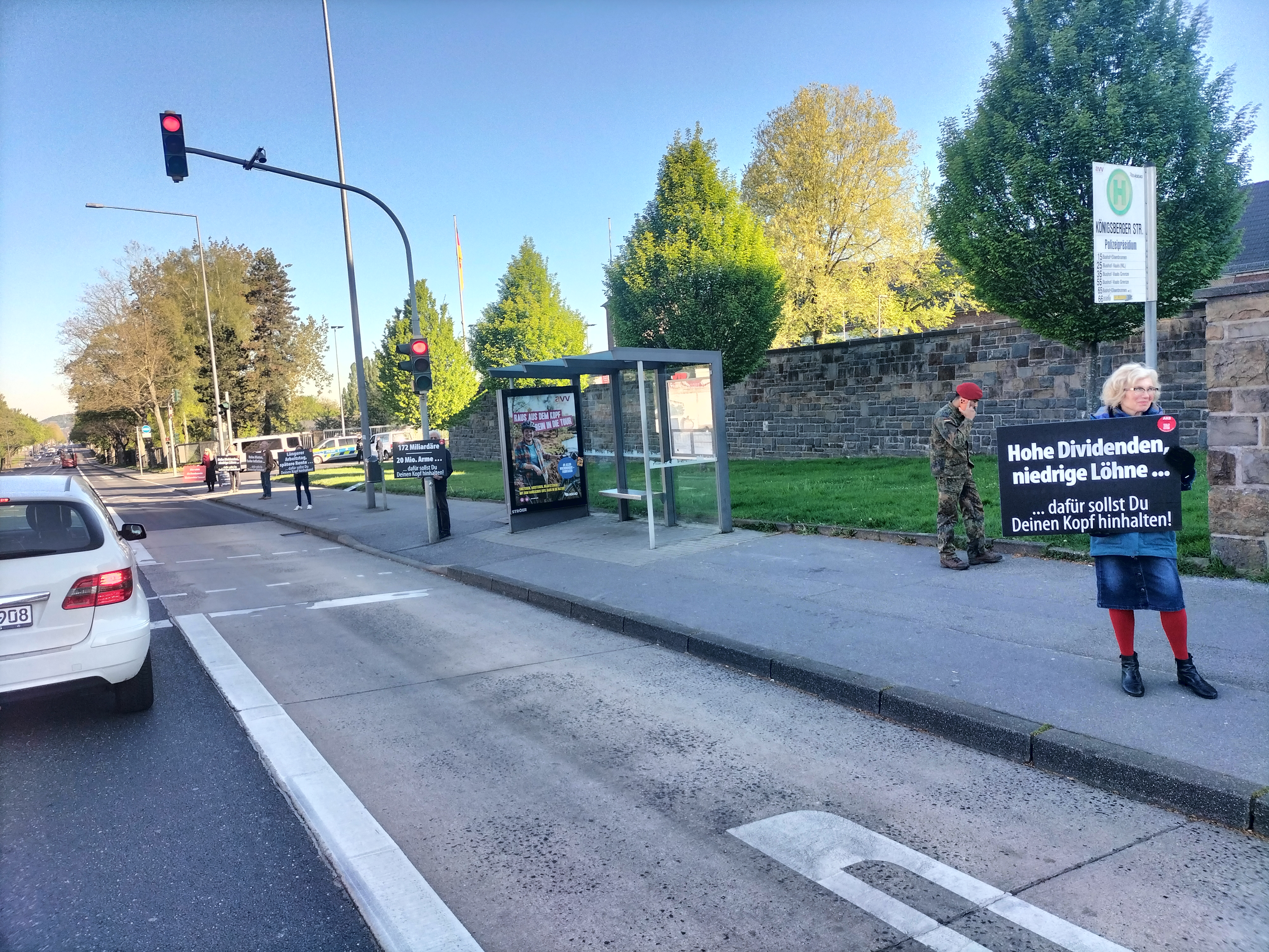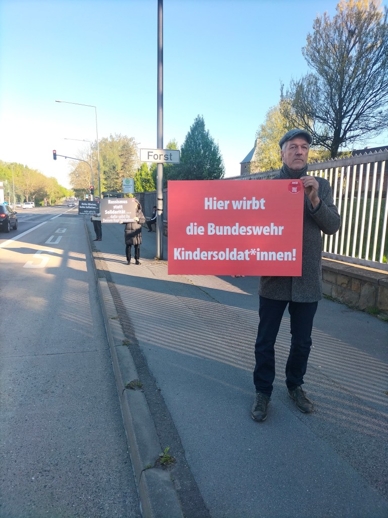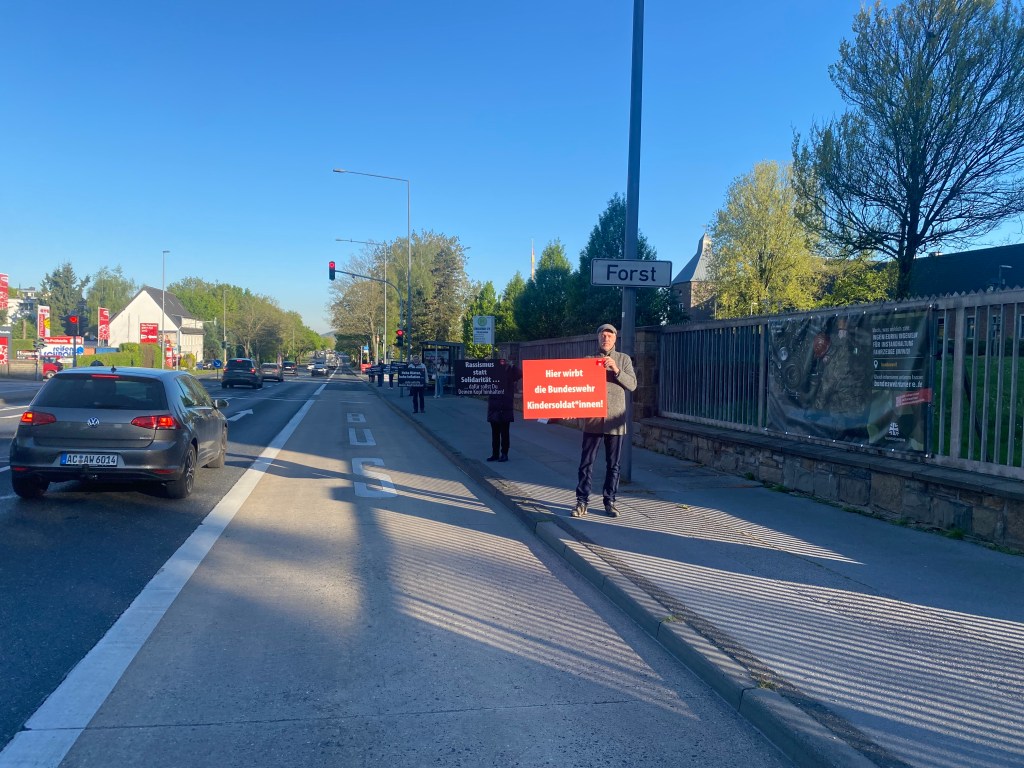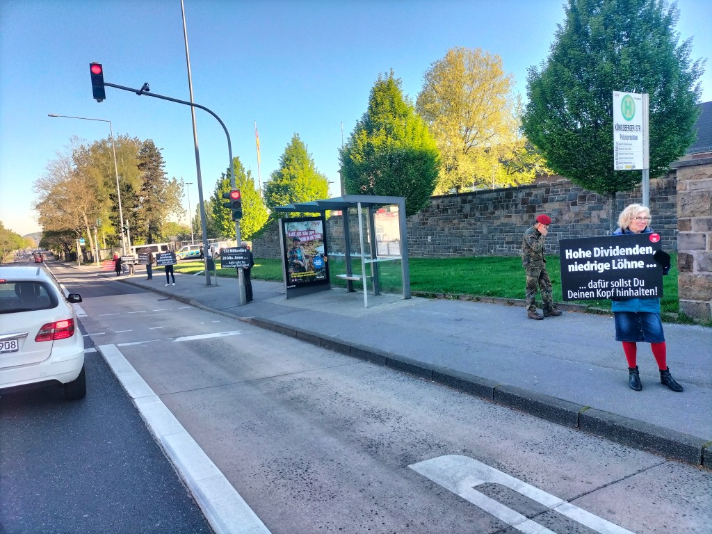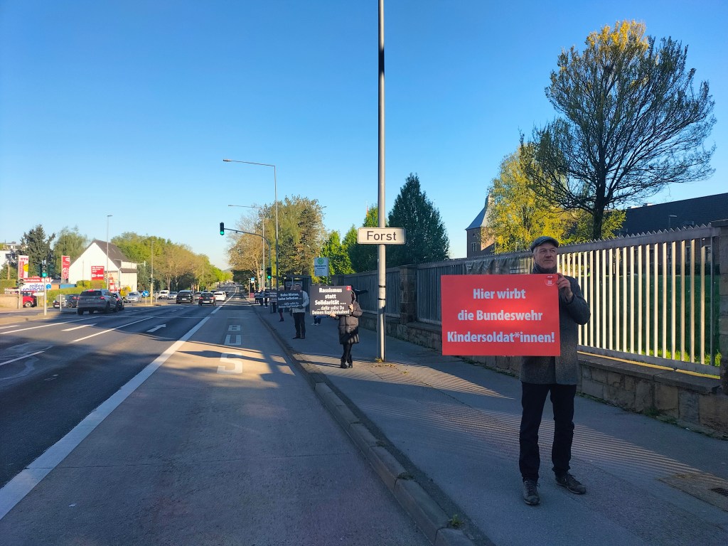 300 Schüler und Schülerinnen beteiligten sich ab 11 Uhr an der Schulstreikaktion. Wir vom Antikriegsbündnis Aachen unterstützten sie mit einer Plakataktion. Auf einem Dutzend großformatiger Plakate wurde dargestellt, wofür die „Kriegstüchtigen“ den Kopf hinhalten sollen: Auf jeden Fall nicht für die eigenen Interessen!!
