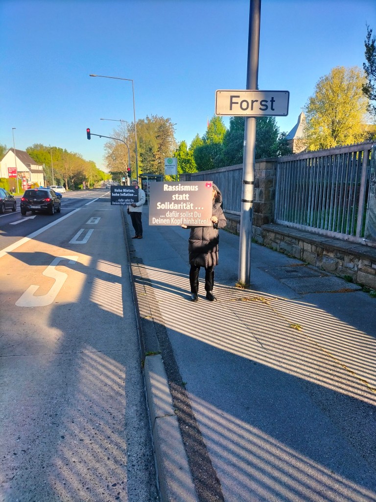 Gemeinsam mit der Aachener LINKSPARTEI haben wir am 1.September 2025 eine gut besuchte Kundgebung und Demonstration gegen die Politik der Bundesregierung durchgeführt. Prominente Rednerin war Frau Ines Schwerdtner, die Parteivorsitzende der LINKEN. Für das Antikriegsbündnis sprachen Jasmin Marla und Ralf Haups. Die Moderation machte Joachim Zinsen, der am Ende auch Frau Schwerdtner interviewte. Frau Schwerdtner erkläre dabei auf Anfrage, dass die LINKE auf jeden Fall gegen die Einführung der Wehrpflicht stimmen werde, ebenso gegen eine Wehrpflicht für Frauen.