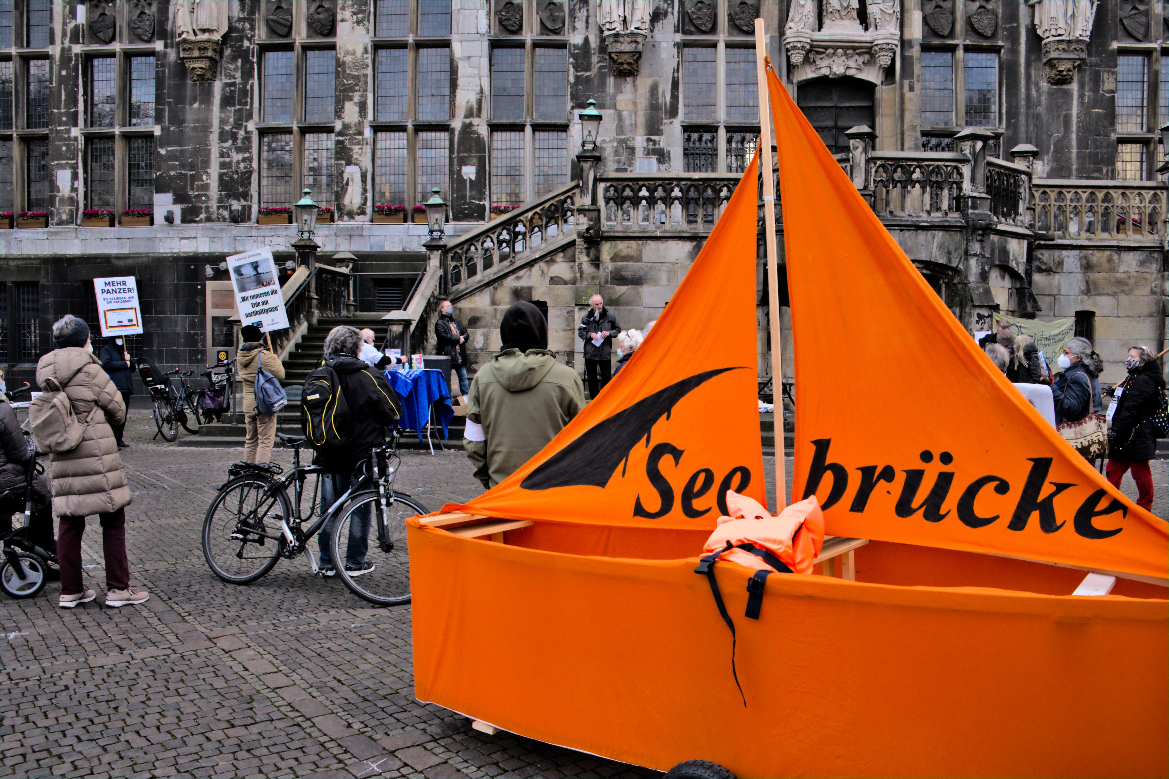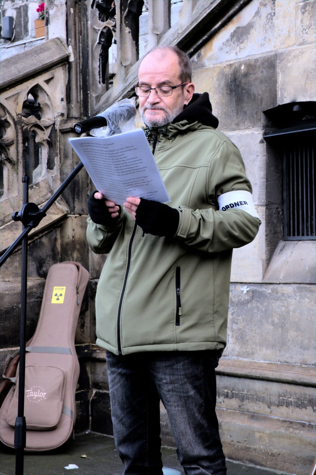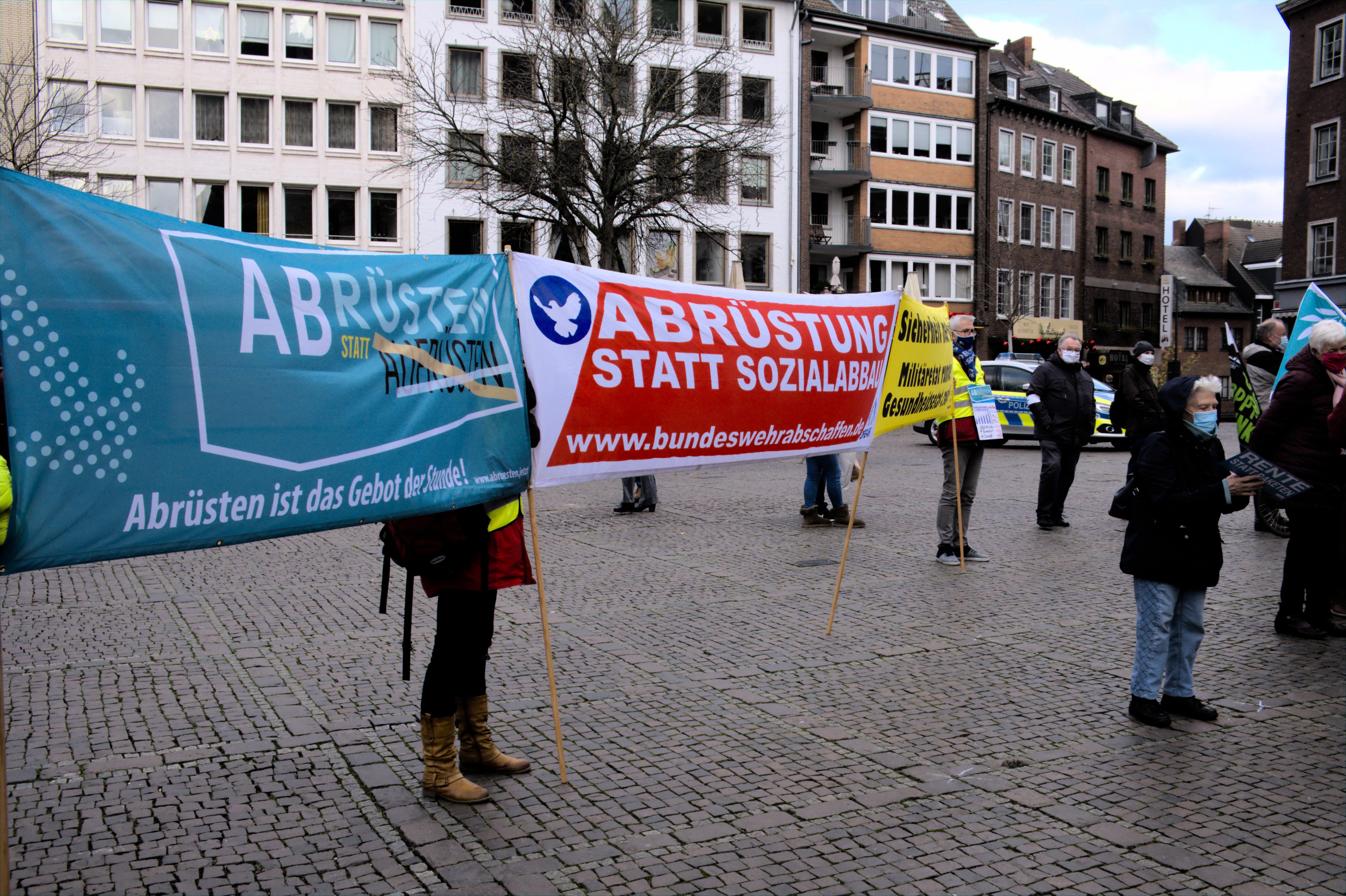 Reden: von links: VVN, Pax Christi für das Bündnis keine Atombomben rund um Aachen, DKP, Bürger+innen Asyl Aachen, Antikriegsbündnis