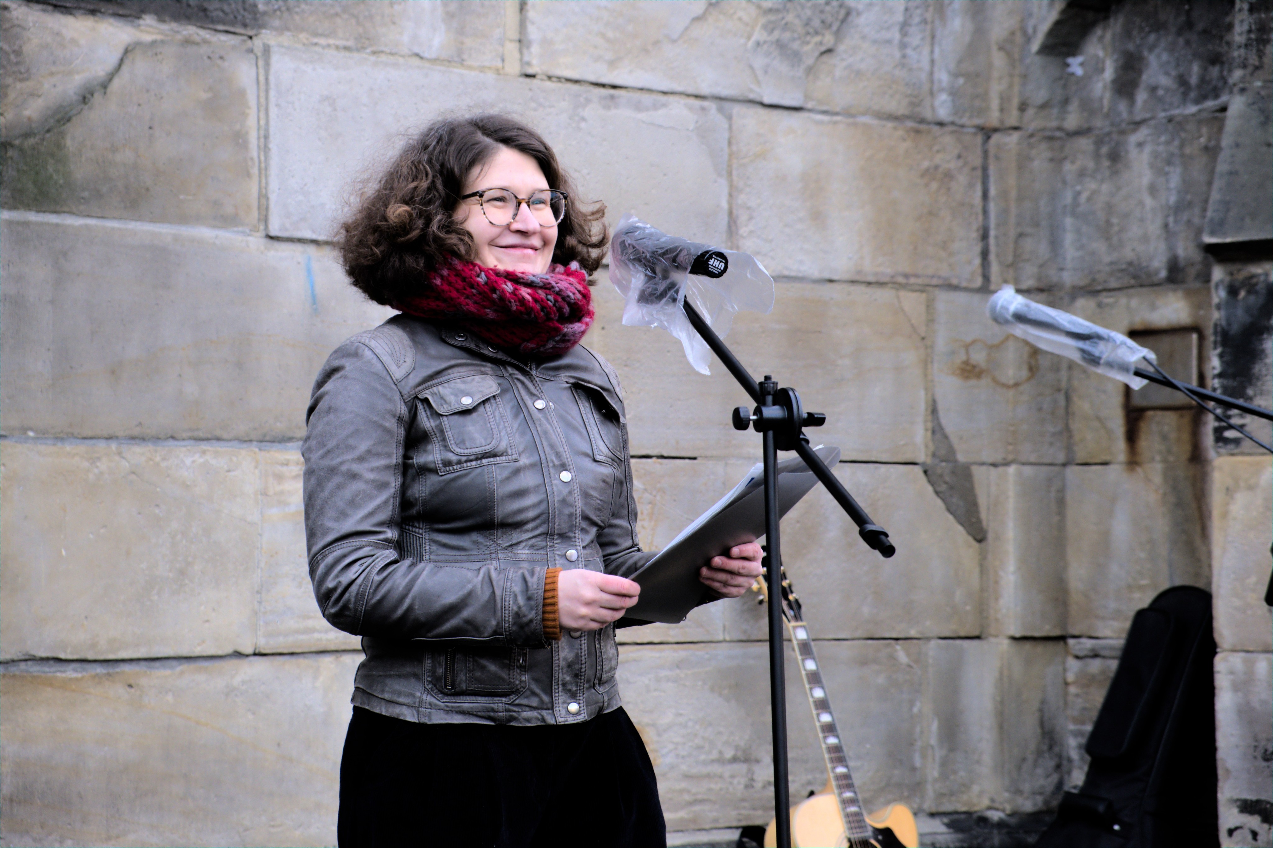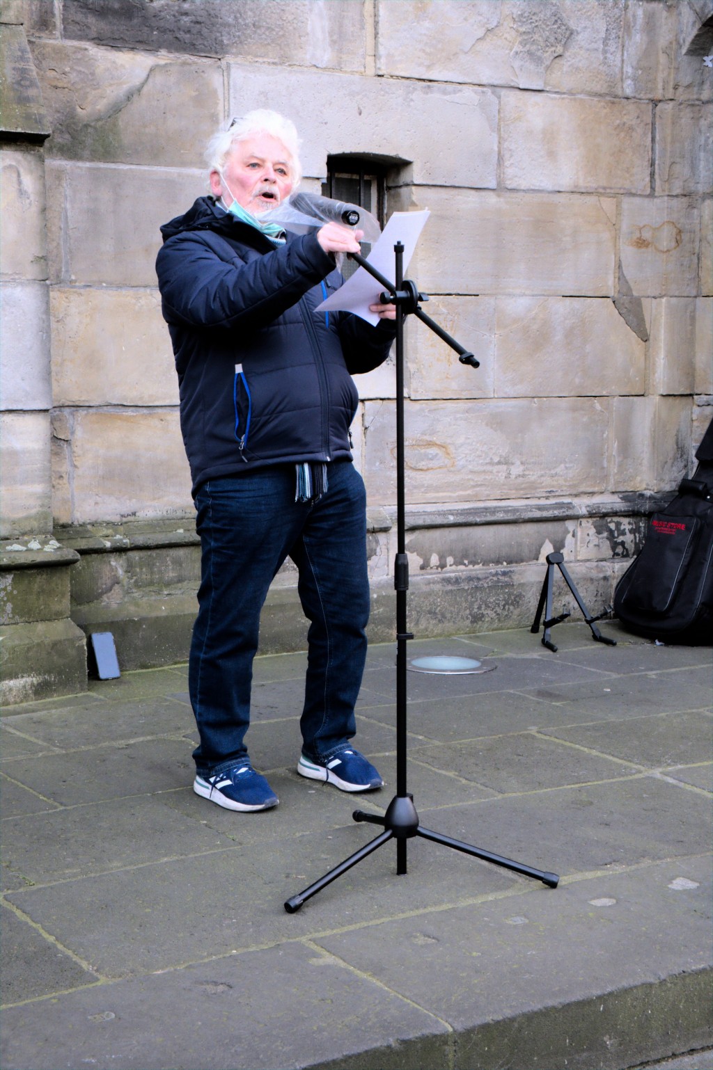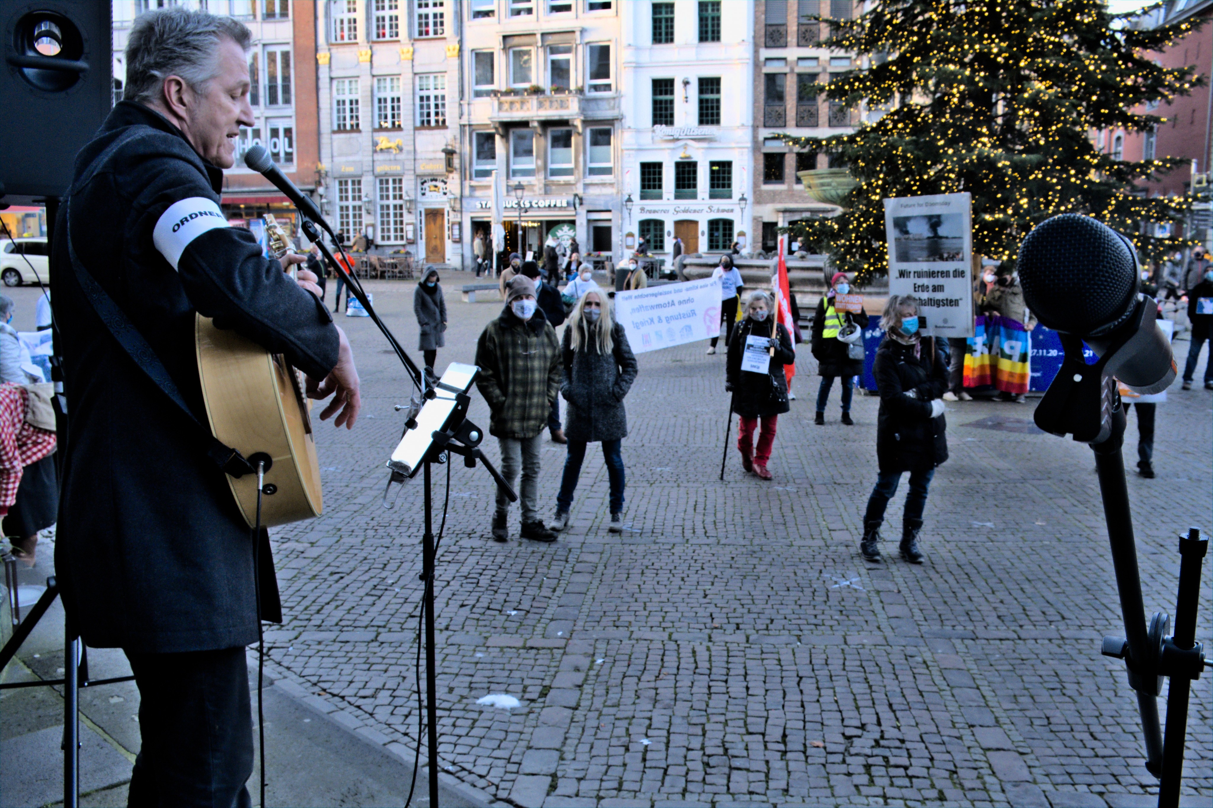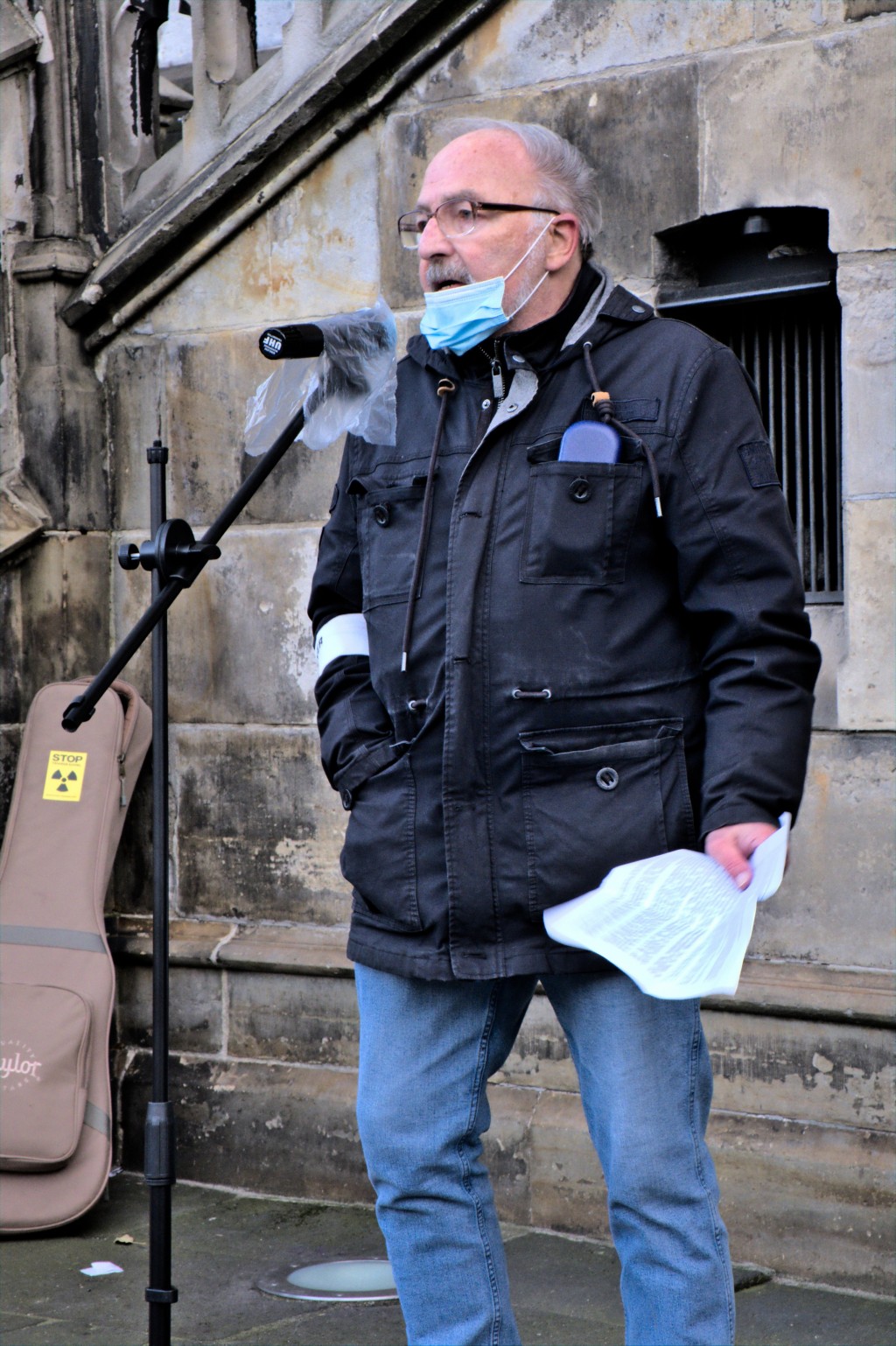 Reden: von links: VVN, Pax Christi für das Bündnis keine Atombomben rund um Aachen, DKP, Bürger+innen Asyl Aachen, Antikriegsbündnis
