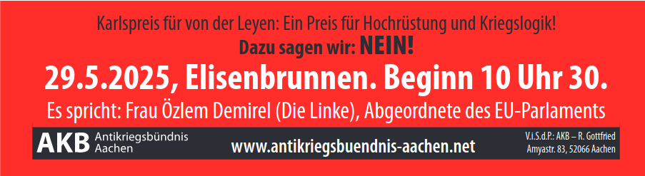 Das Antikriegsbündnis Aachen lädt ein zu einer Protestkundgebung gegen die