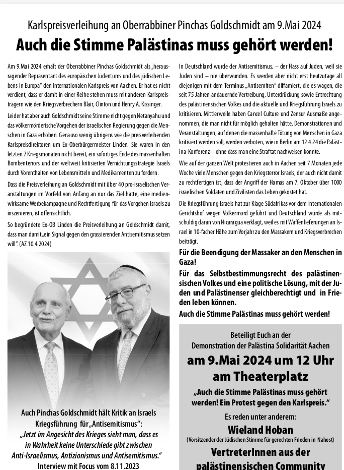 Am „Tag der Bundeswehr“ in Aachen informierten wir die AachenerInnen mit Flugblättern und einer satirischen antimilitaristischen Aktion über die Hochrüstung und Kriegsvorbereitungen (Kriegstüchtigkeit) der Ampel-Regierung.