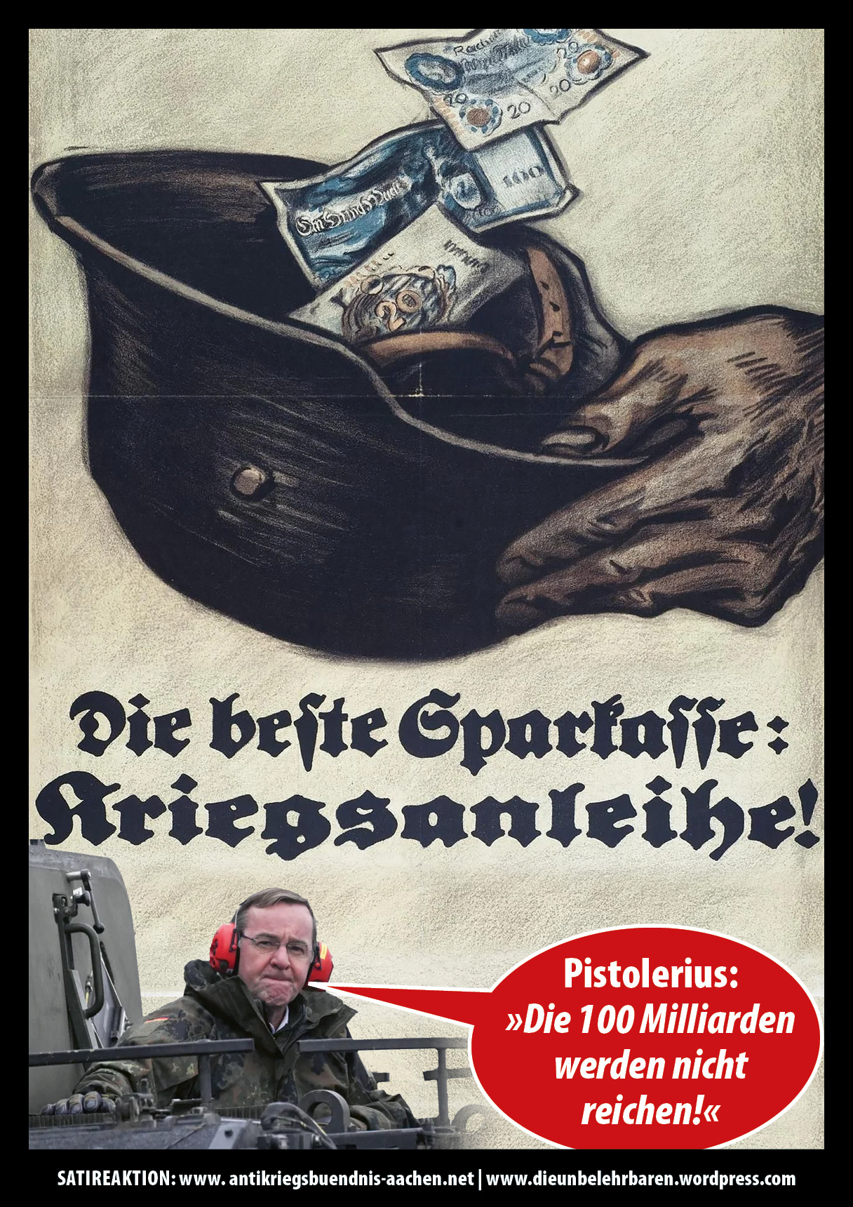 Das „100-Milliarden Sondervermögen“ ist eine Kriegsanleihe und muss über Sozialabbau und die steuerliche Belastung der Arbeitenden an die Kreditgeber der Banken zurückbezahlt werden.