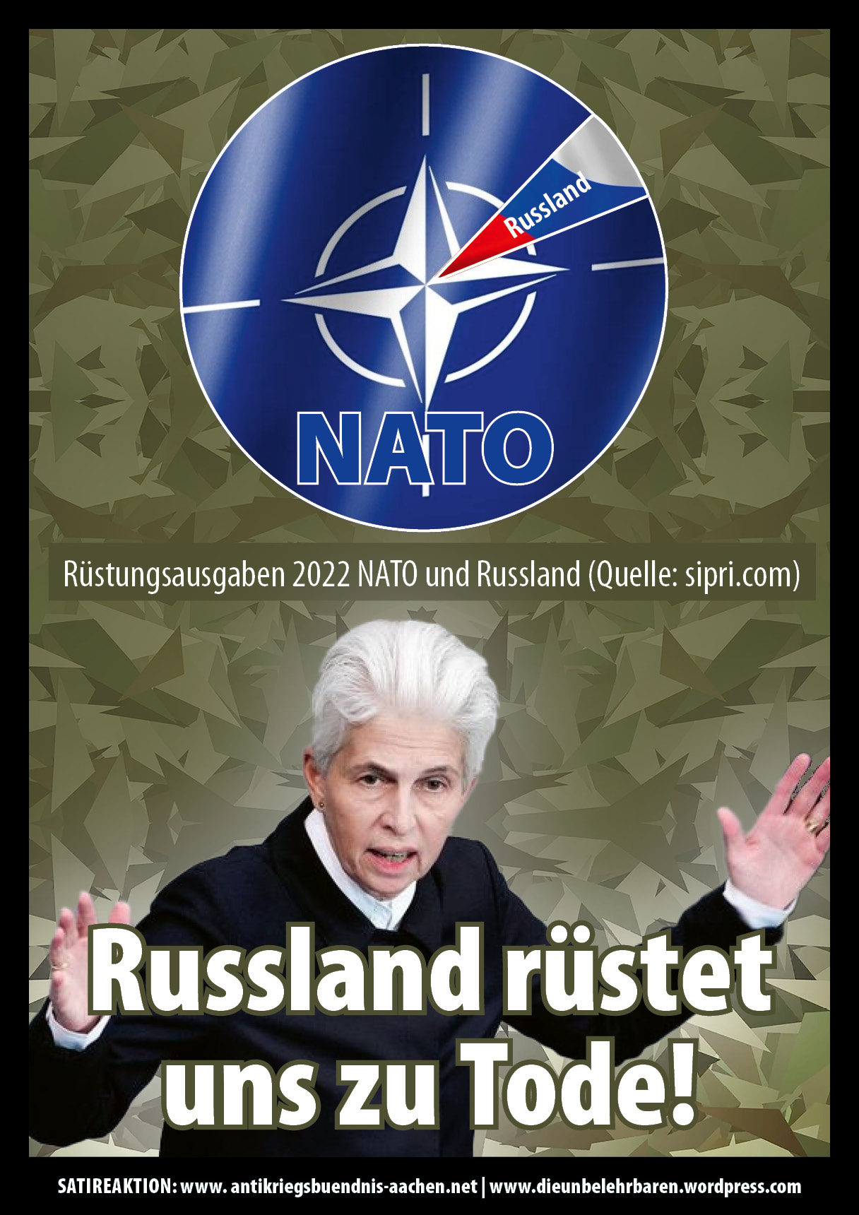 Ein Angriff Russlands auf NATO-Staaten ist angesichts des militärischen Kräfteverhältnis unwahrscheinlich. Die Bedrohungshysterie dient einzig der Rechtfertigung der gigantischen Hochrüstung und Herstellung der „Kriegstüchtigkeit“! Die NATO-Osterweiterung eine Provokation und Einkreisung Russlands!