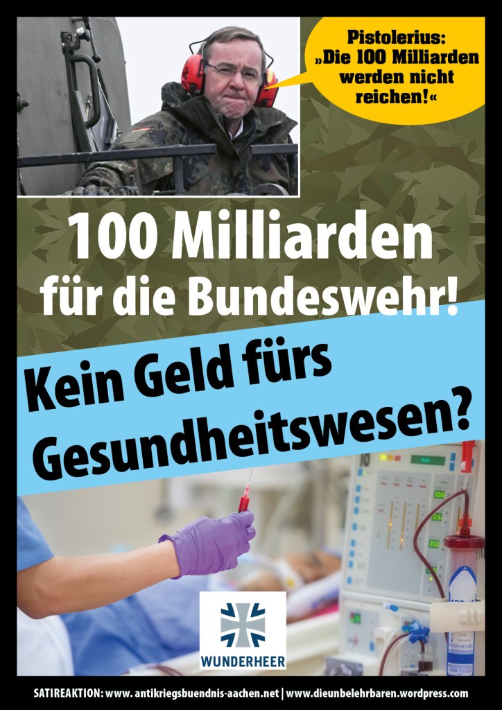 Wieder: Kanonen statt Butter! Die Ampel rüstet hoch auf Kosten der Sozialen Leistungen in Pflege, der Bildung, des Wohnungsbaus etc.